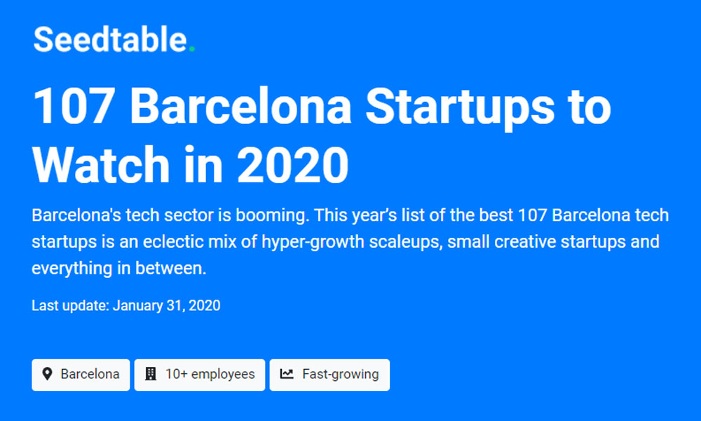 El sector tecnològic de Barcelona està a l’alça. SeedTable, un butlletí setmanal per estar al dia de les escenes tecnològiques d’Europa, ha publicat la llista 2020 de les 107 millors startups. Més del 15% de les empreses del rànquing són de l’àmbit sanitari, com ara Rob Surgical, Anaconda Biomed, Ability Pharmaceuticals, B-wom, Mediktor, Minoryx Therapeutics, Senolytic Therapeutics i STAT-Dx (actualment Qiagen).